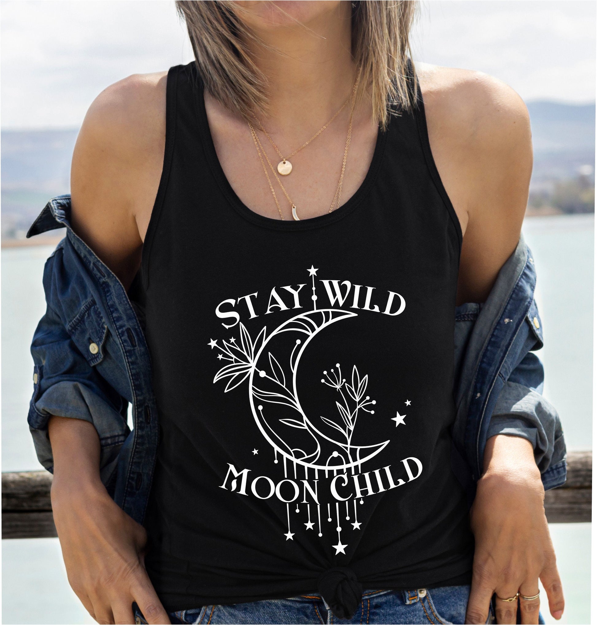 Embrace your wild and free spirit with our "Stay Wild Moon Child" tank top, designed for spiritual and hippie women who connect with the celestial energy of the moon. Perfect for gym sessions, yoga practice, or casual summer outings, this tank top combines comfort with a boho-chic style.